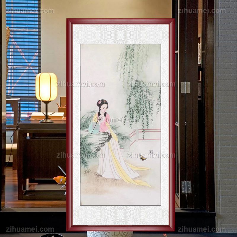 精品中式人物国画美女仕女图小四尺实木画框 手绘