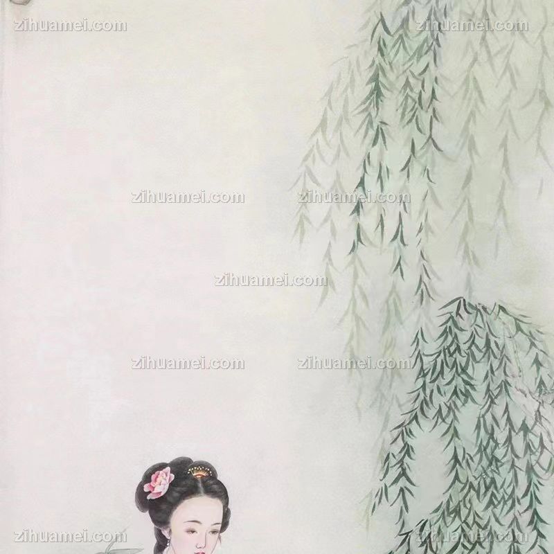 中式人物工笔写实仕女图美女国画水墨画 手绘