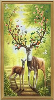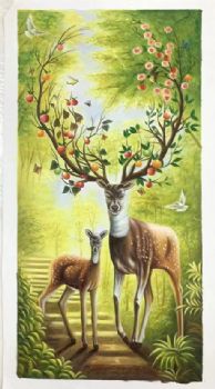 送长辈动物写实油画梅花鹿手绘油画卧室挂画 手绘