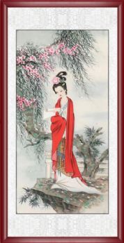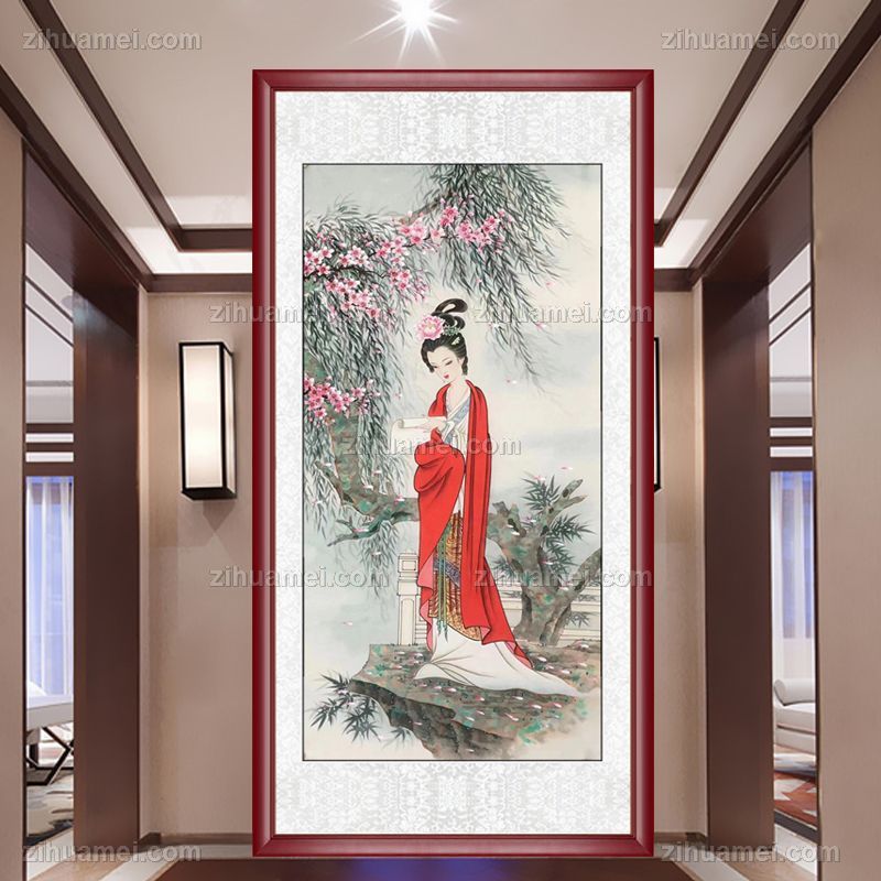 精品中式人物国画美女仕女图小四尺实木画框 手绘