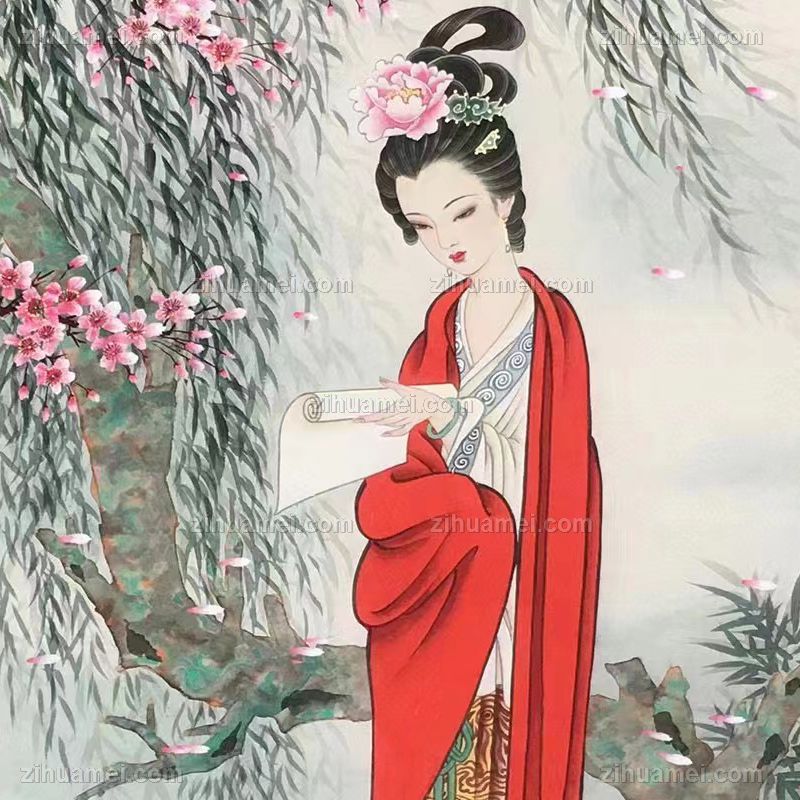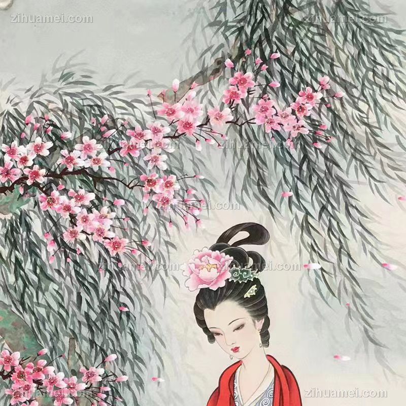 中式人物工笔写实仕女图美女国画水墨画 手绘
