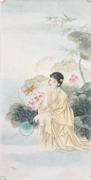 • 荷花池边上相思仕女图四尺精品仕女水墨工笔人物国画纯手绘国画