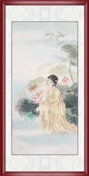精品中式人物国画美女仕女图小四尺实木画框 手绘