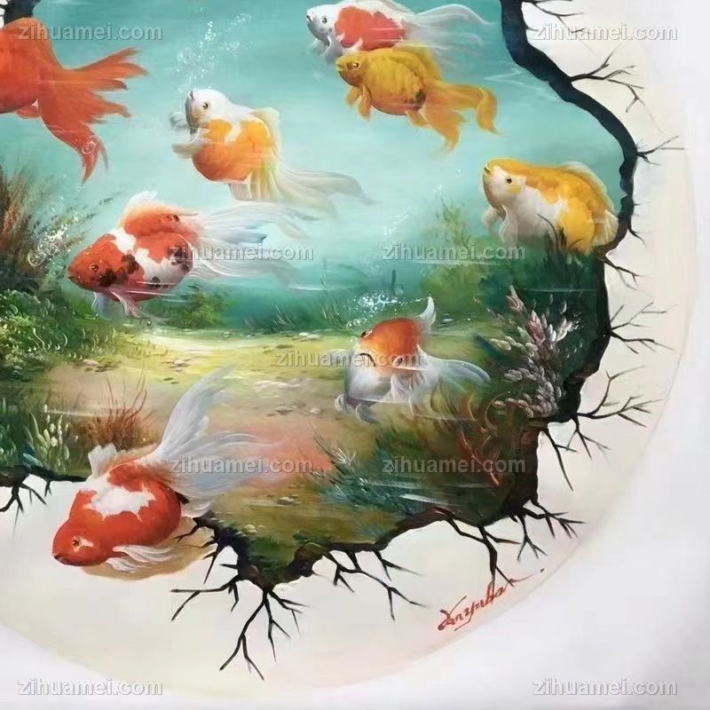 纯手绘九鱼图油画