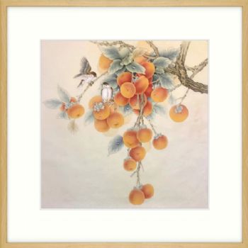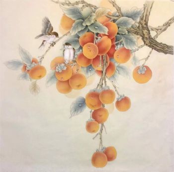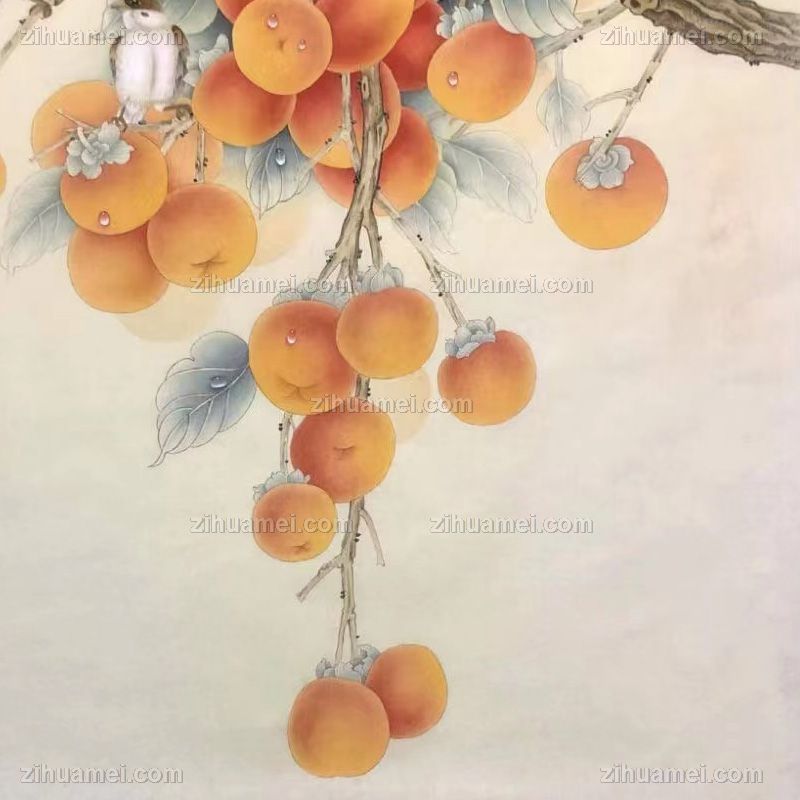 • 喜上枝头好事连连纯手绘水墨国画花鸟工笔画柿子图