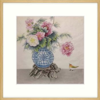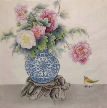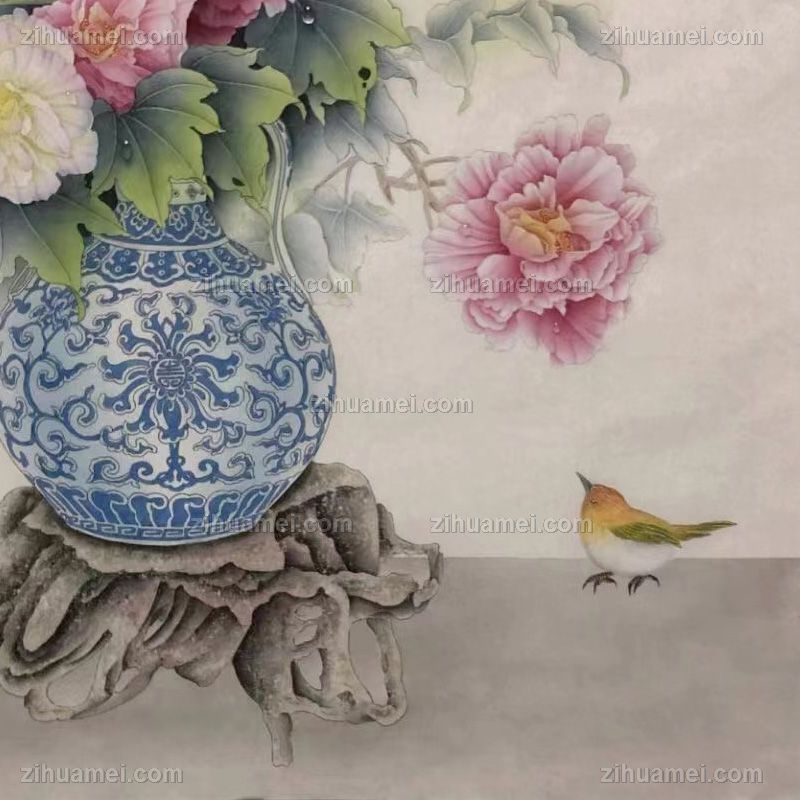 • 牡丹花瓶图纯手绘工笔写实花卉水墨国画