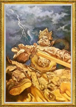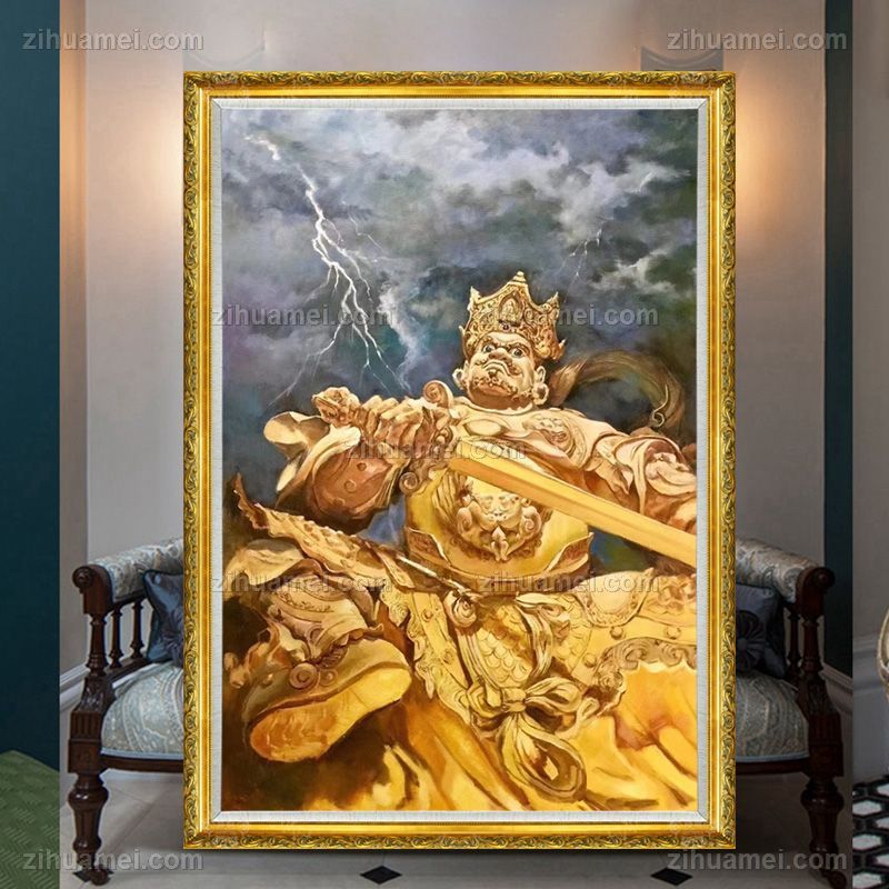 • 新中式纯手绘油画四大天王之南方增长天王职位风神话人物油画