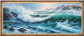 精品海浪风景油画乘风破浪纯手绘风景油画 手绘