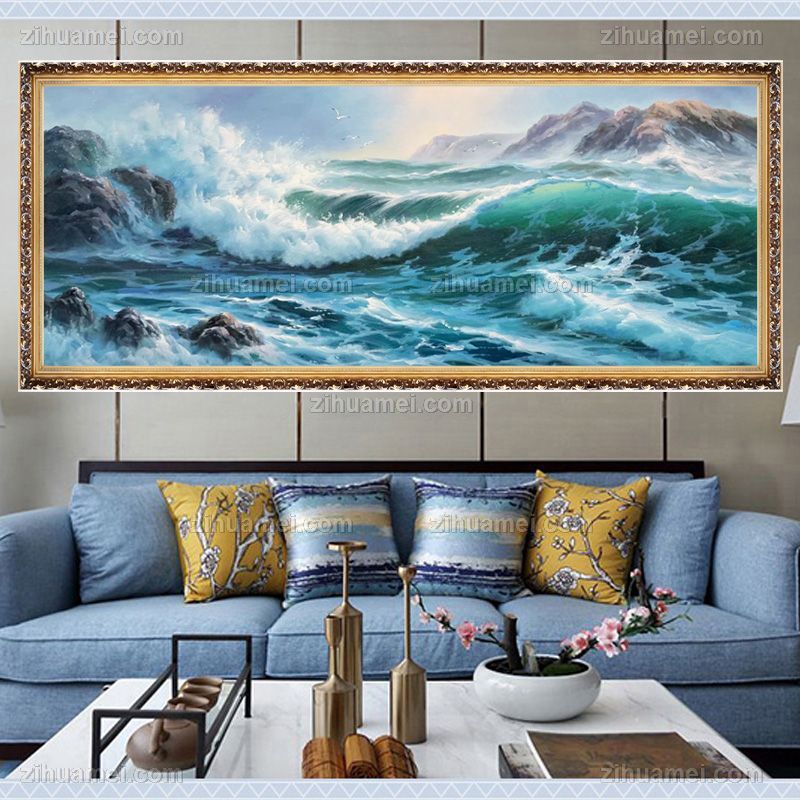 海浪风景油画纯手绘油画玄关风景油画 手绘