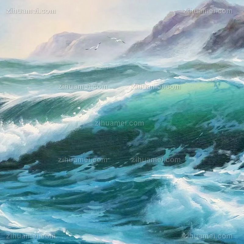 惊涛骇浪风景油画纯手绘海浪风景油画 手绘