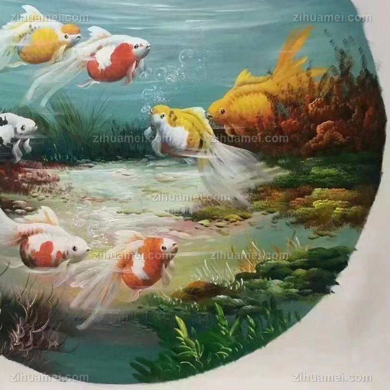纯手绘九鱼图油画