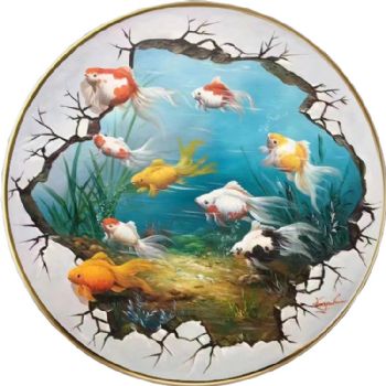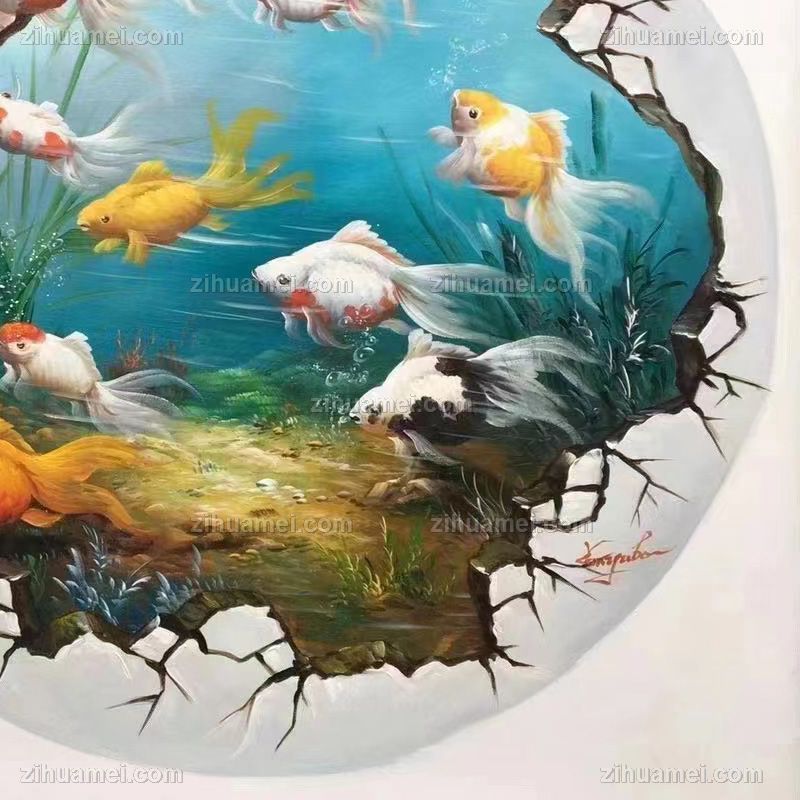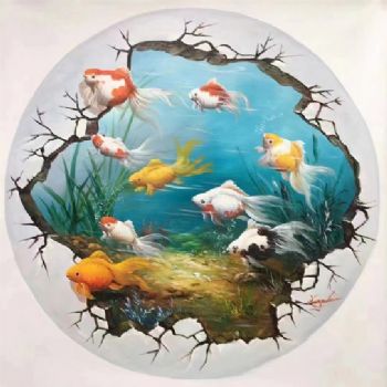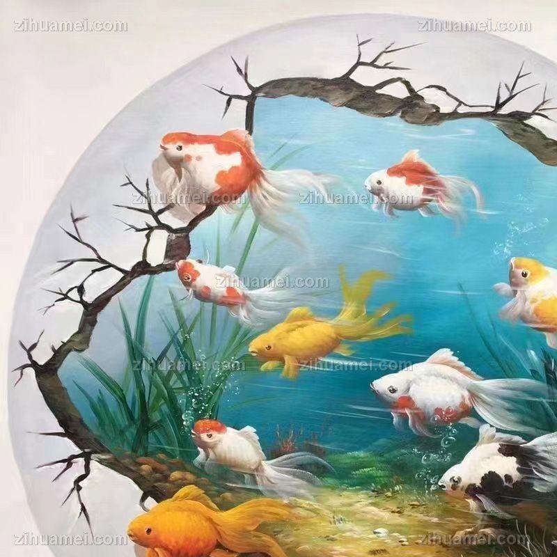 纯手绘九鱼图油画