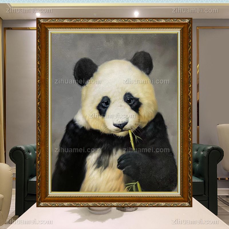 餐厅客厅动物油画纯手绘熊猫图写实油画 手绘