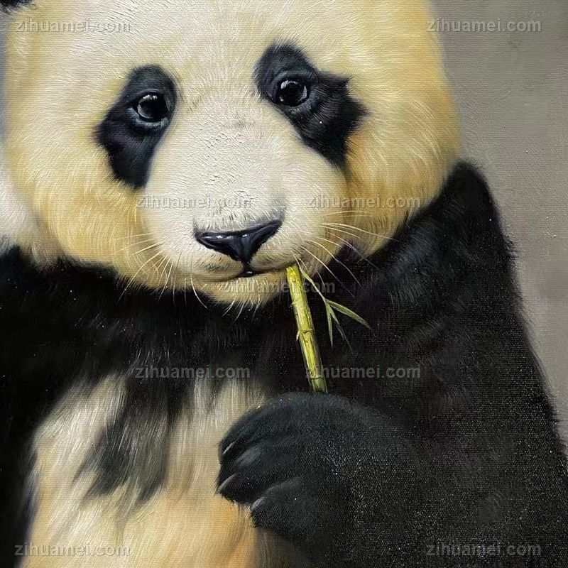 • 精品动物油画系列纯手绘写实动物油画吃竹子的大熊猫