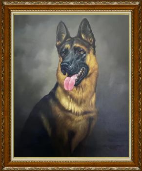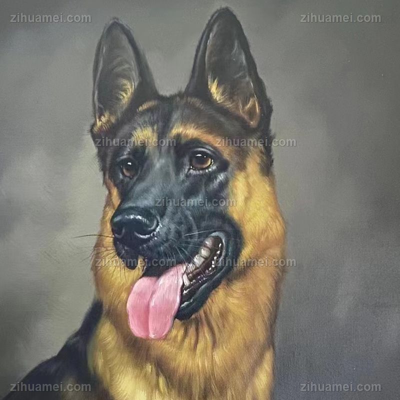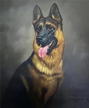 • 德国黑背牧羊犬精品动物油画系列纯手绘写实动物油画