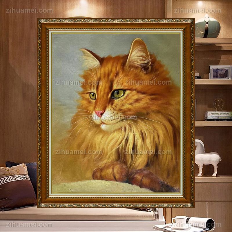 手绘宠物油画儿童卧室油画猫咪动物油画 手绘