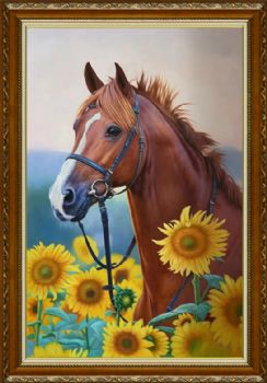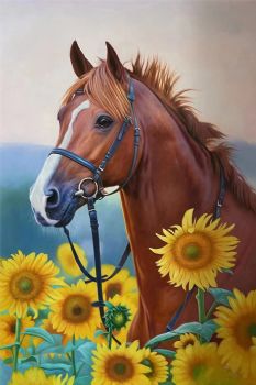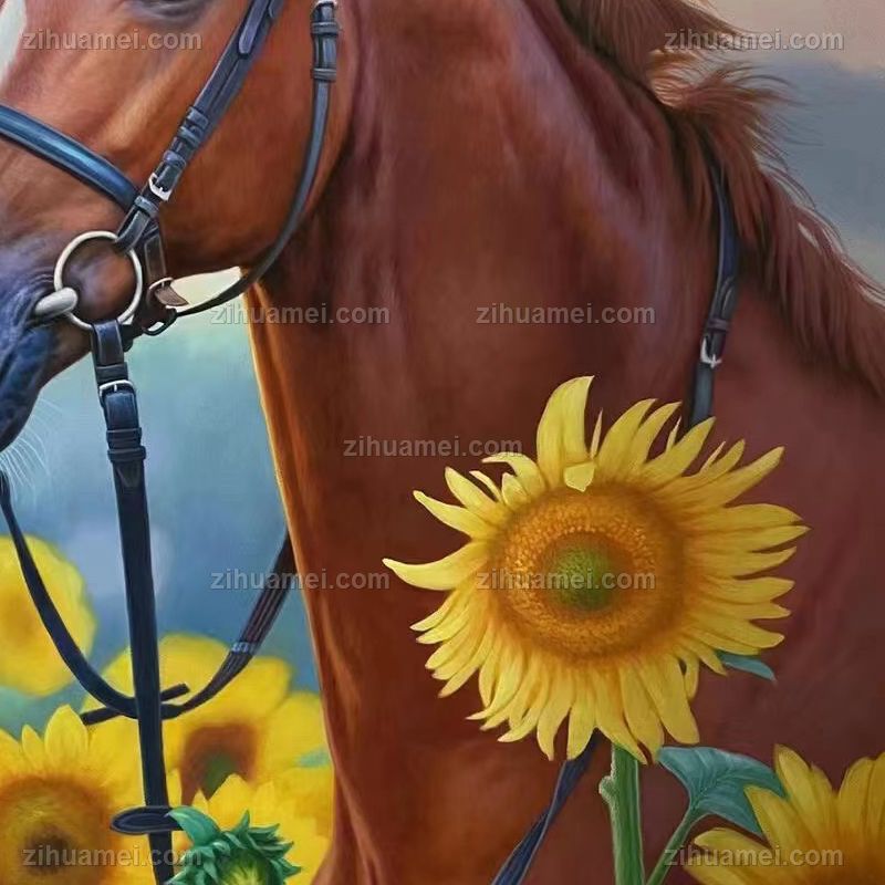 • 棕色大马与向日葵精品动物油画系列纯手绘写实动物油画