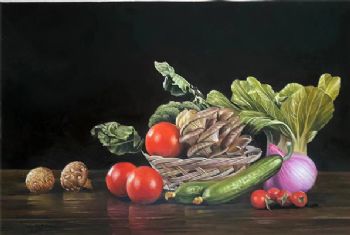 • 蔬菜静物写实油画洋葱西红柿白菜黄瓜纯手绘油画