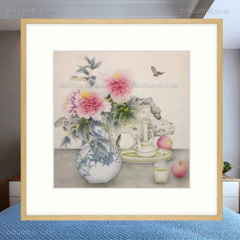 纯手绘富贵瓶花卉水墨国画餐厅卧室挂画 手绘