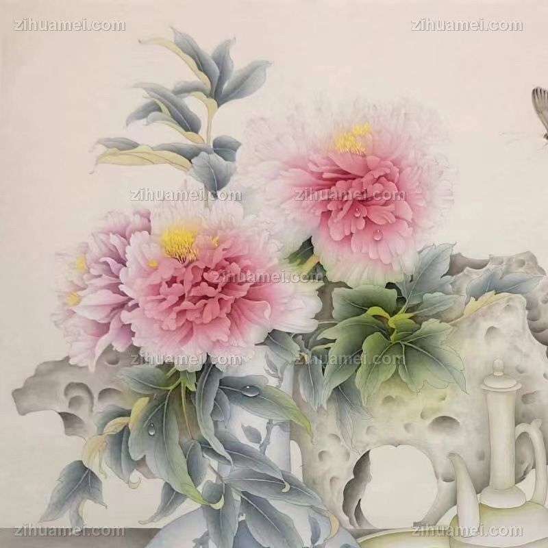 • 适合卧室餐厅的中式水墨写实牡丹作品