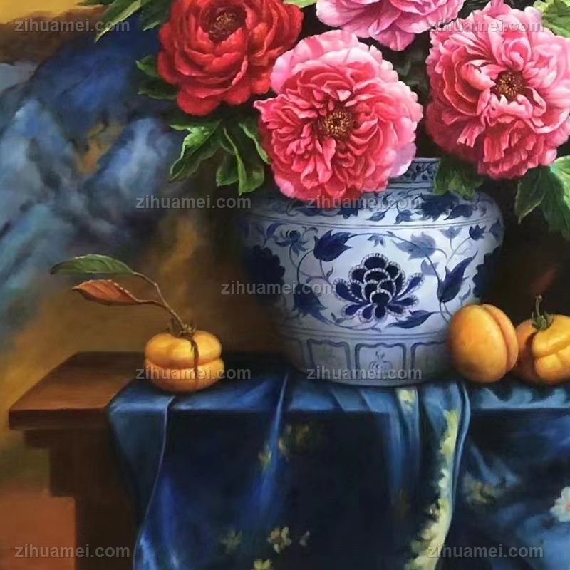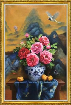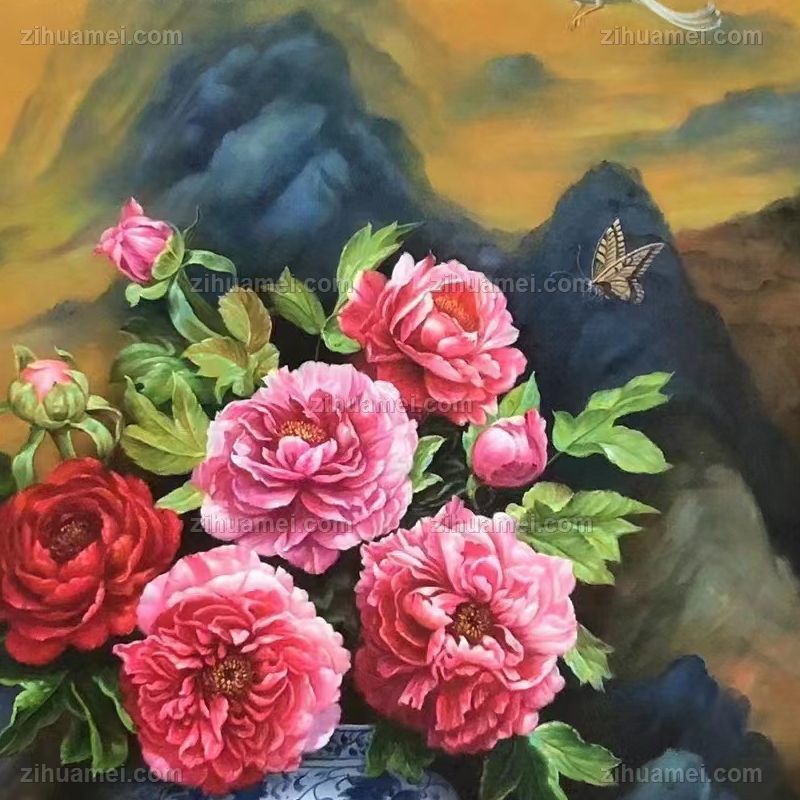 • 适合客厅餐厅大厅的精品手绘花卉油画牡丹图