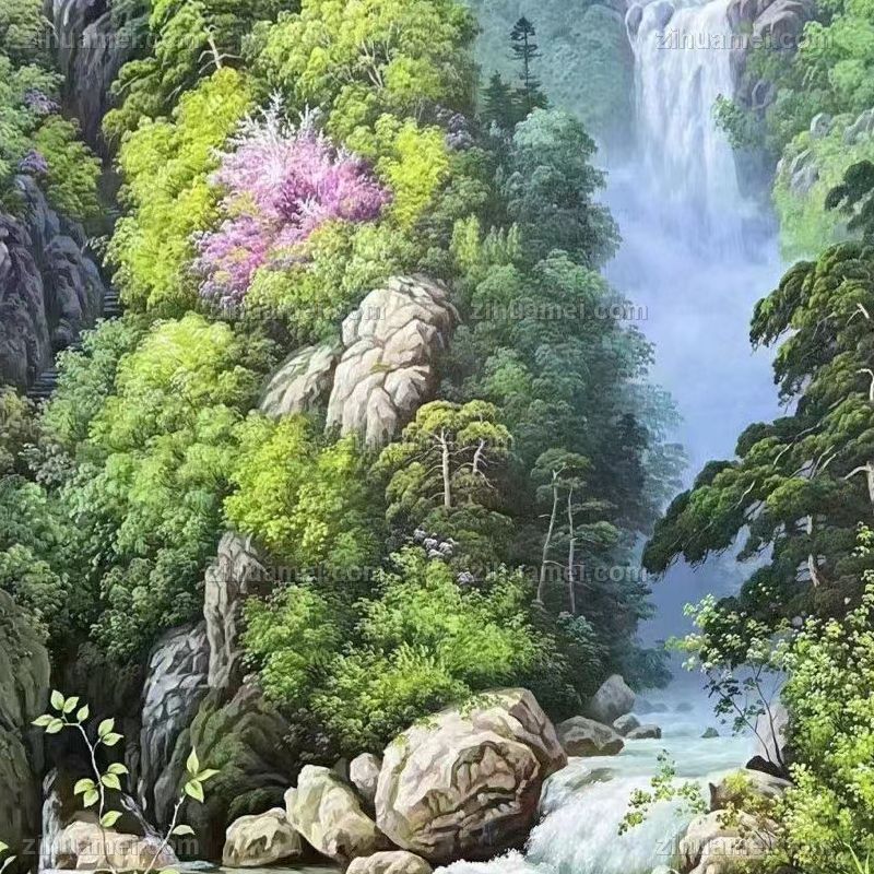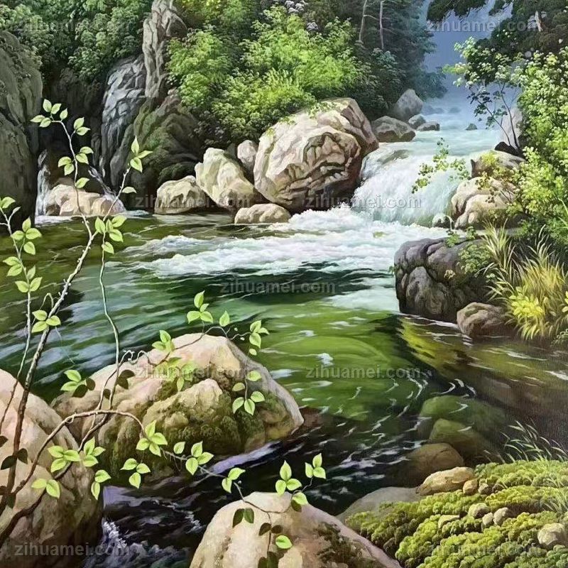 • 青山绿水风景油画纯手绘高品质山水画实木画框