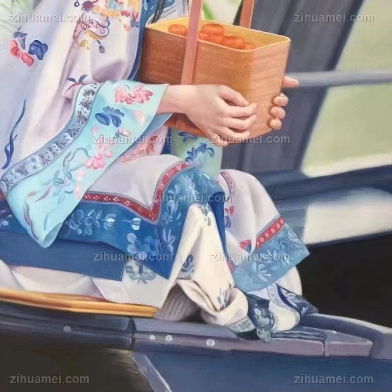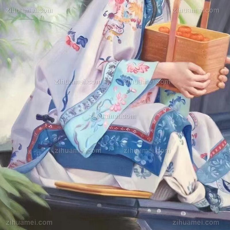 • 新中式古典写实人物油画纯手绘人物油画小船上的美女图