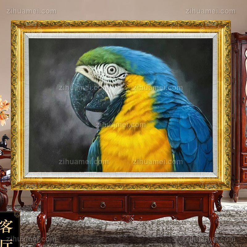 适合挂办公室的手绘动物油画金钢鹦鹉