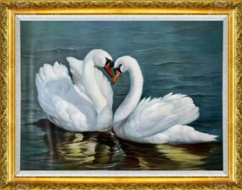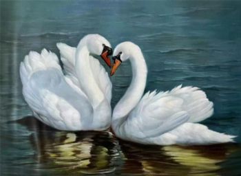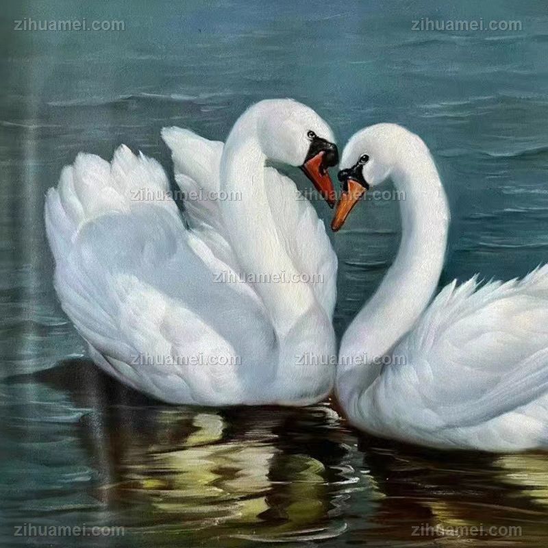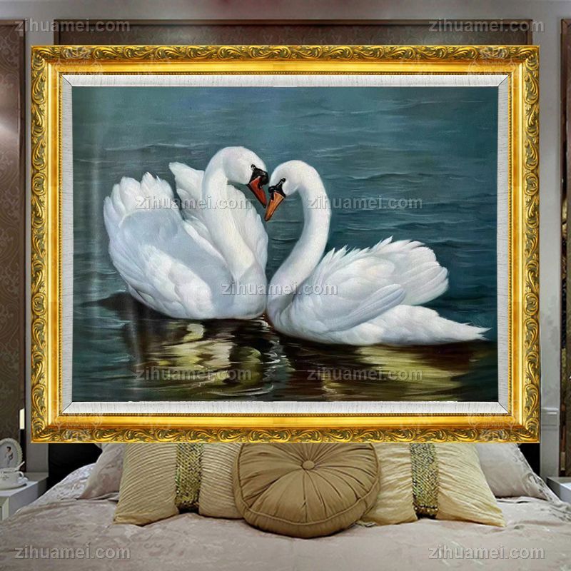 • 精品天鹅动物写实油画恩爱夫妻床头挂画纯手绘实力画家油画作品