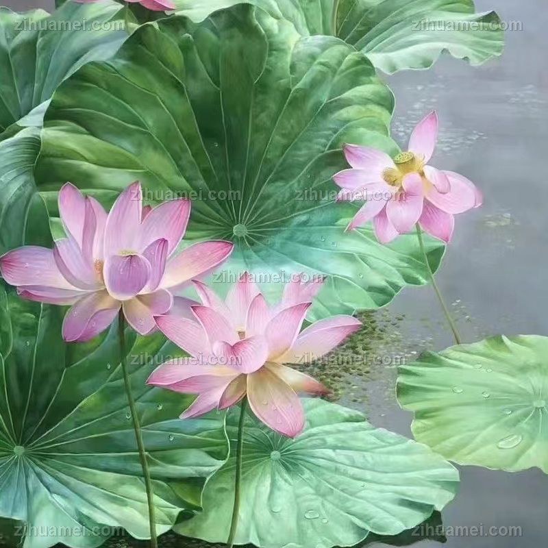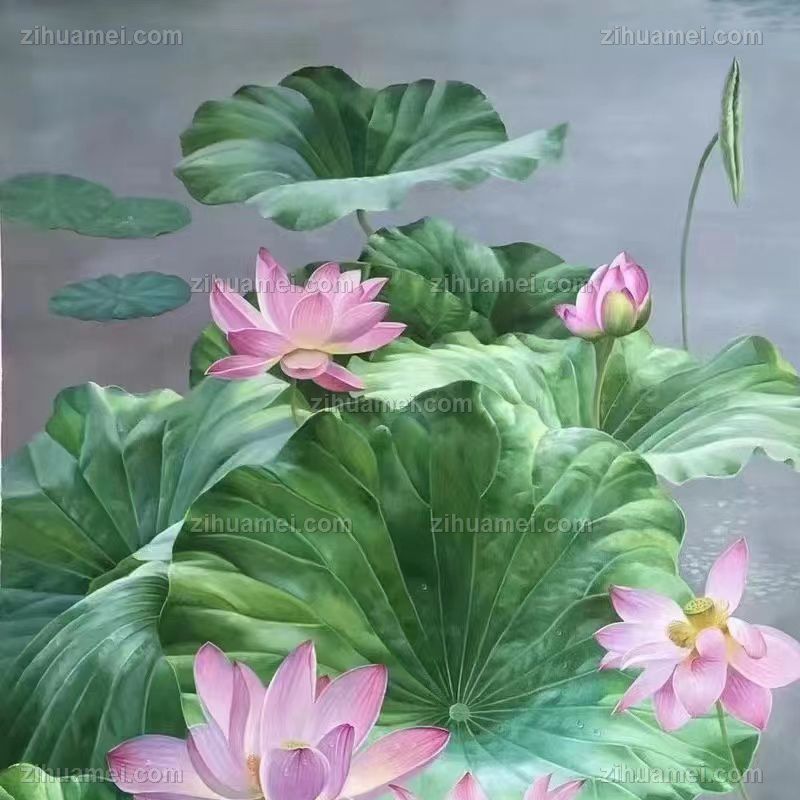 • 适合玄关客厅的写实荷花池风景油画