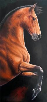 • 精品动物写实油画奔腾的棕色大马纯手绘实力画家油画作品