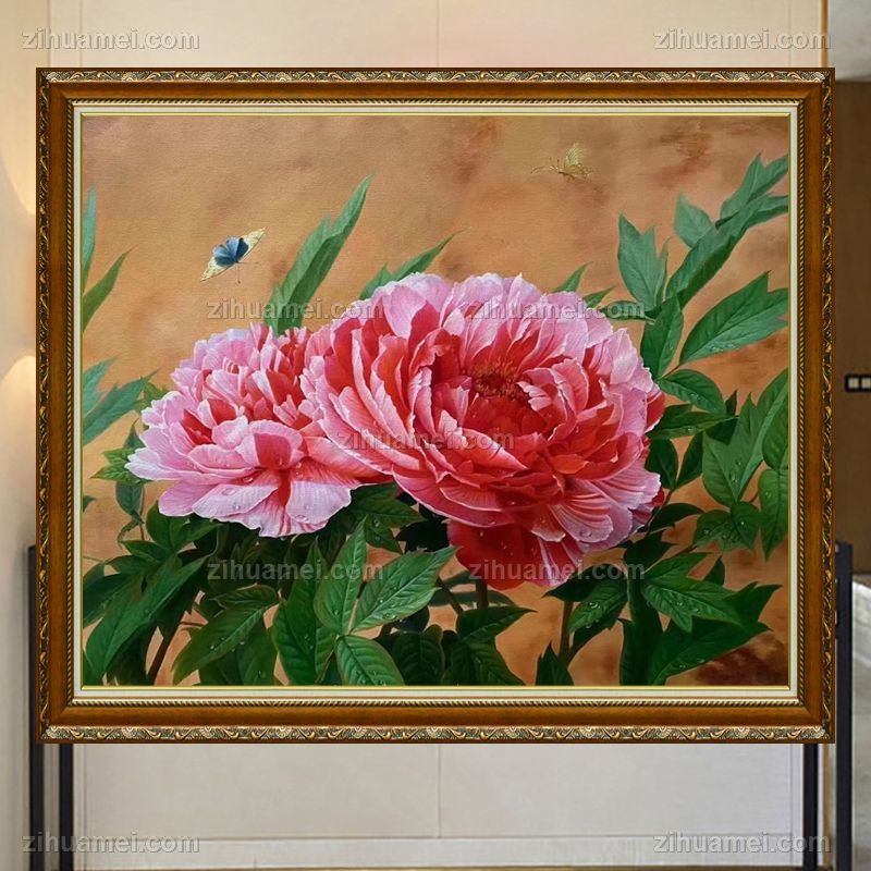 精品牡丹油画新中式纯手绘花卉油画实木画框 手绘