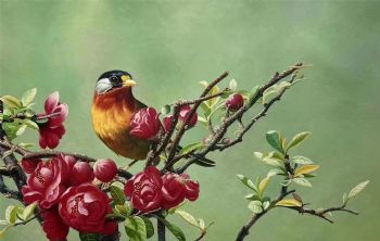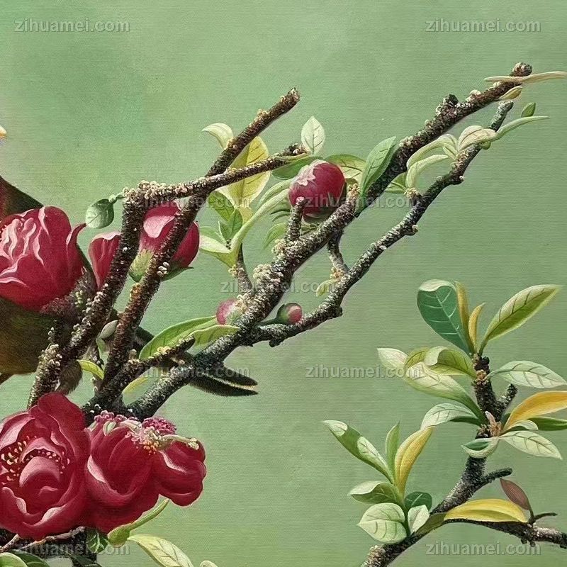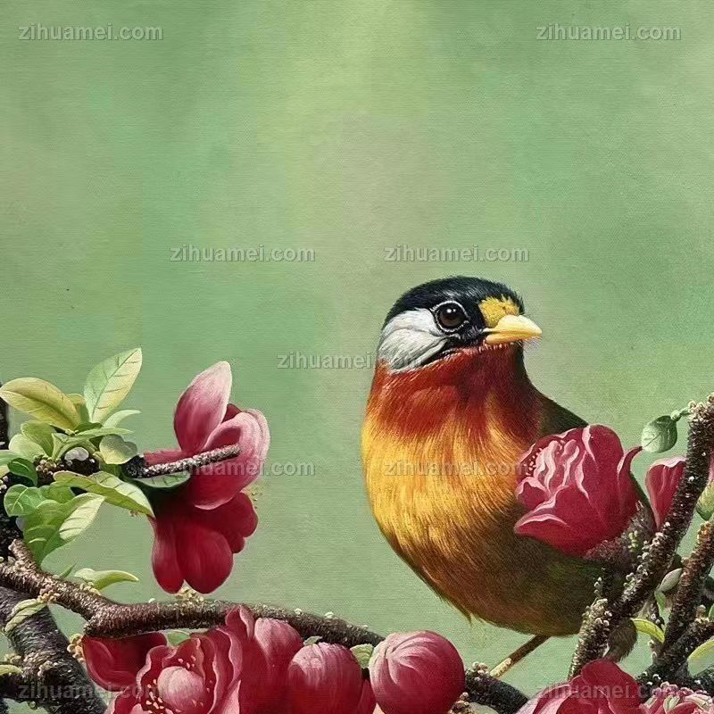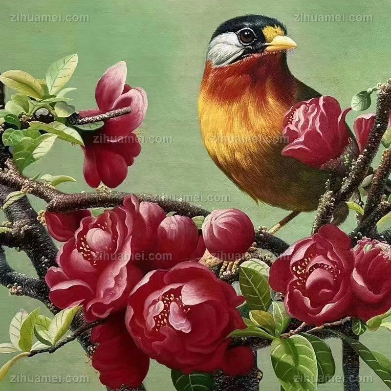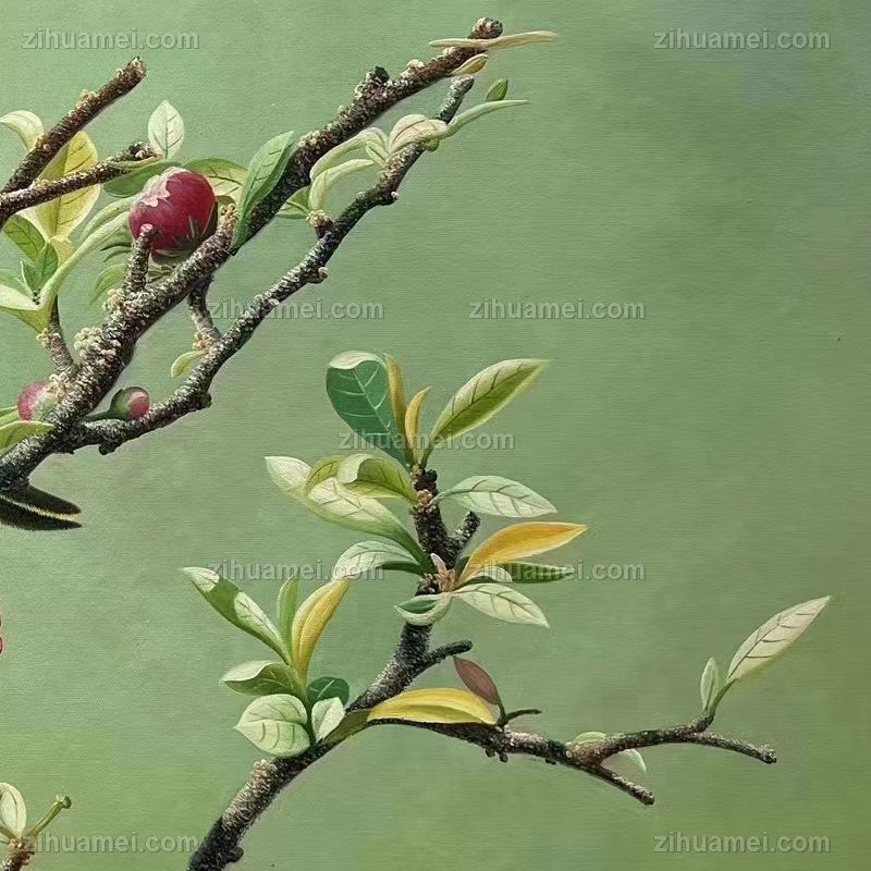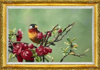 • 新中式纯手绘动物油画作品喜上枝头写实风景油画