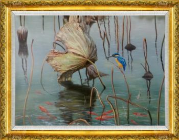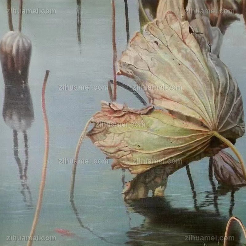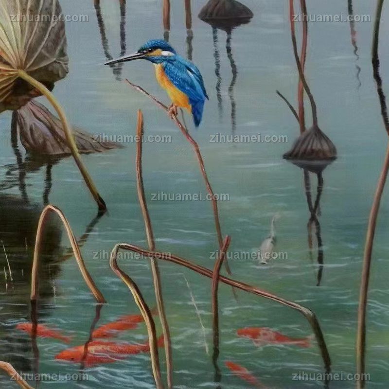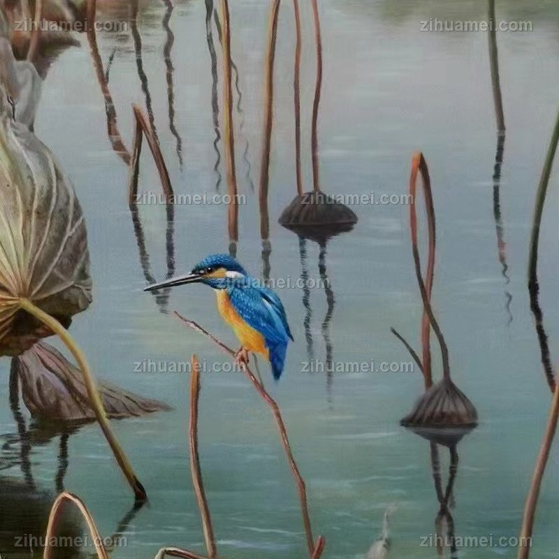 • 写实风景油画高品质荷花池风景油画纯手绘经典动物油画