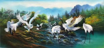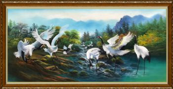 • 新中式纯手绘动物写意油画一品鸟仙鹤图寓意延年益寿幸福吉祥