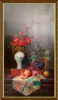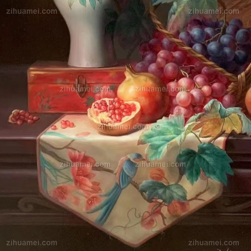 葡萄石榴新中式油画