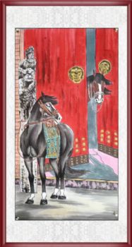 • 纯手绘水墨动物国画神骏图开门鸿新中式动物国画实木画框