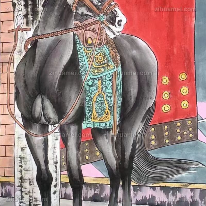 手绘动物油画马到成功朝鲜水墨国画办公室挂画 手绘