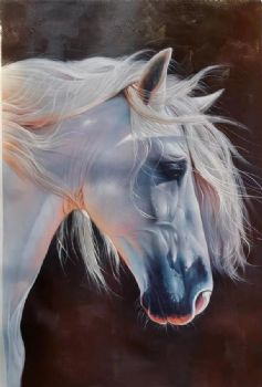 当代艺术大写意白马系列纯手绘马头油画作品 手绘