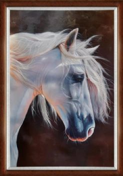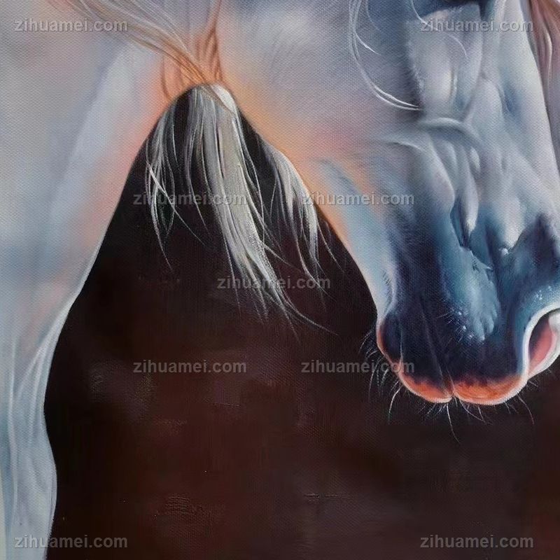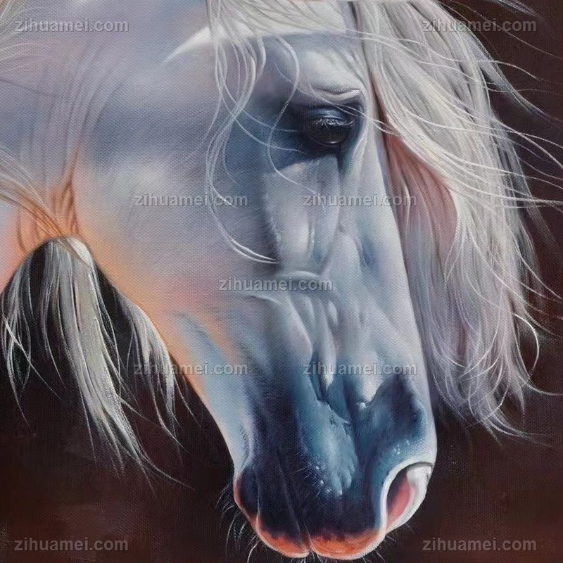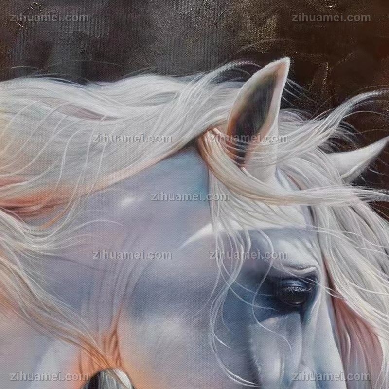 精品花卉白马图纯手绘写实动物油画实木画框 手绘