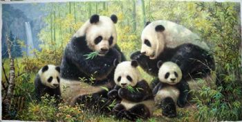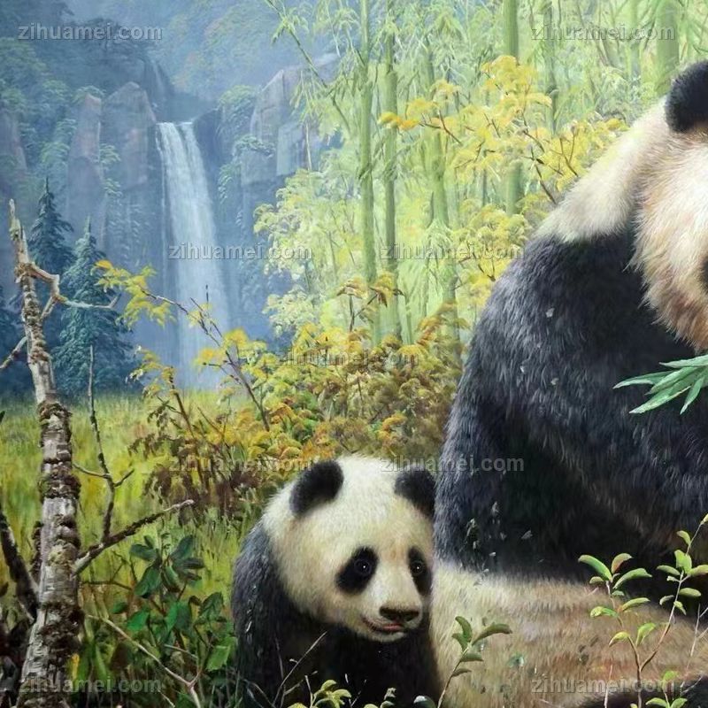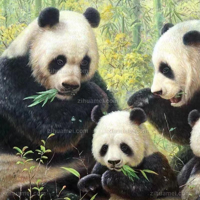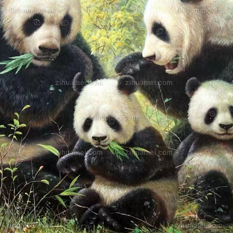 • 适合客厅大厅的写实动物油画熊猫图