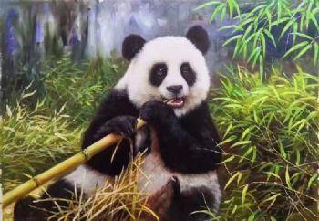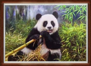 • 正在享用的熊猫纯手绘写实动物油画适合餐厅的精品油画