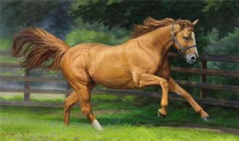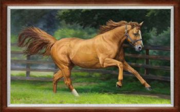 • 精品超写实纯手绘动物油画骏马图实力画家作品
