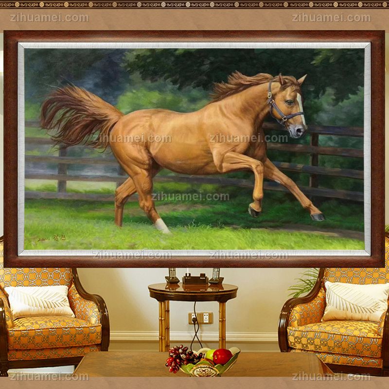 精品花卉白马图纯手绘写实动物油画实木画框 手绘
