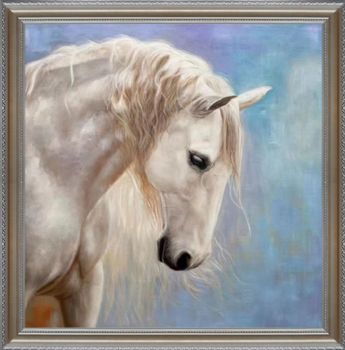 • 淡蓝背景白马系列纯手绘当代艺术马头小写意现代油画作品