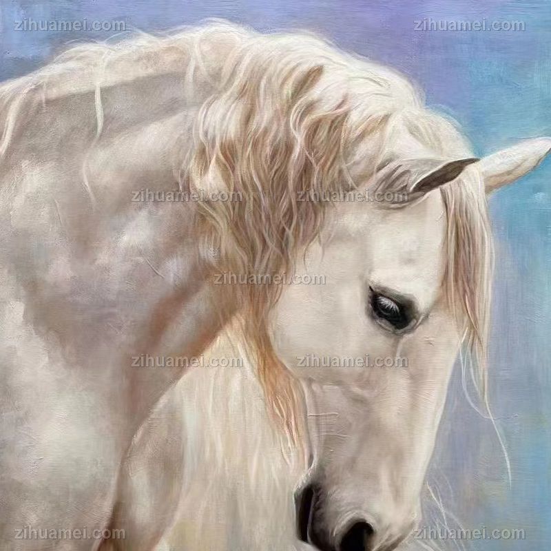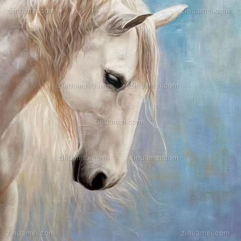 精品花卉白马图纯手绘写实动物油画实木画框 手绘