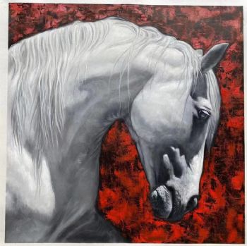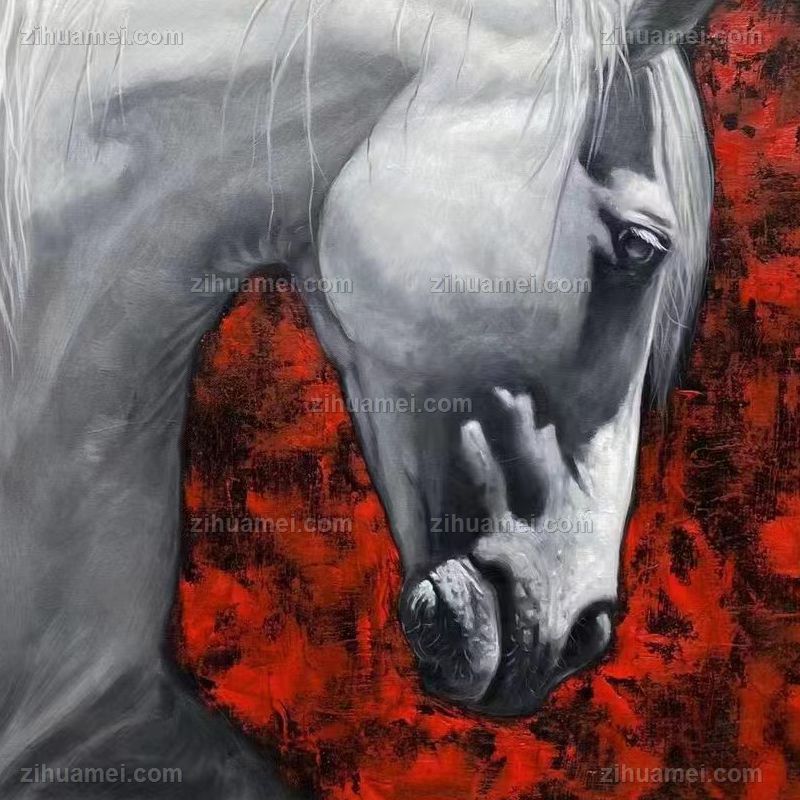 • 深红背景白马系列纯手绘当代艺术马头小写意现代油画作品