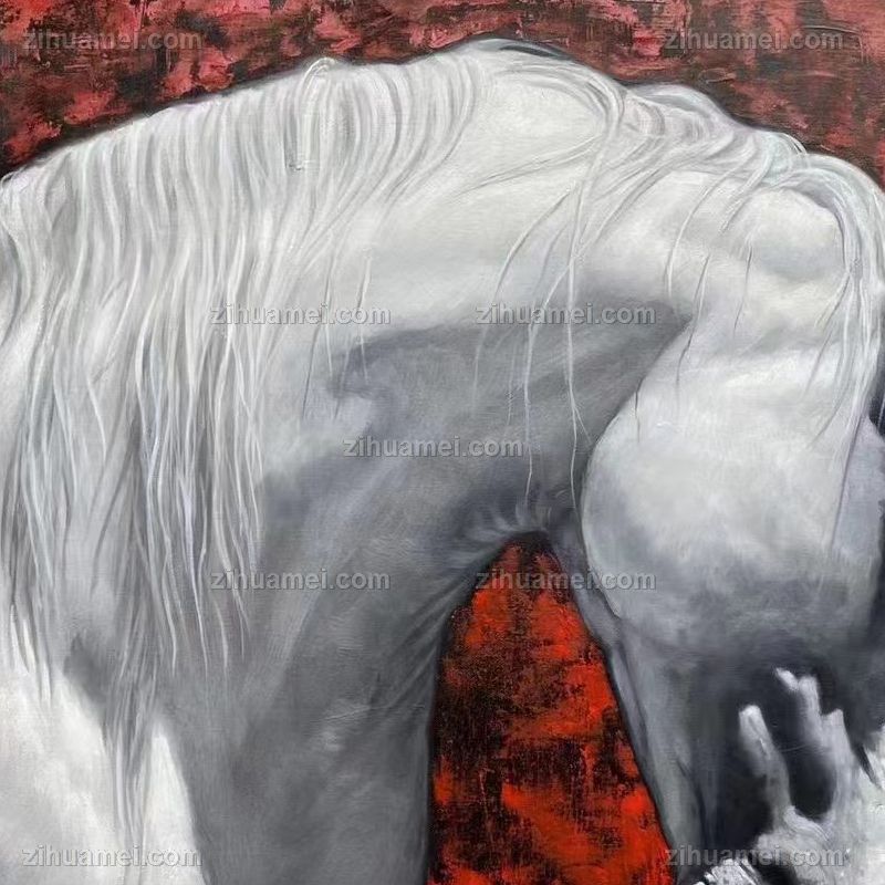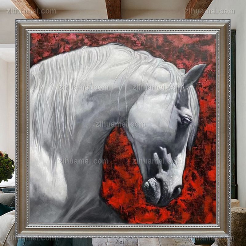 精品花卉白马图纯手绘写实动物油画实木画框 手绘