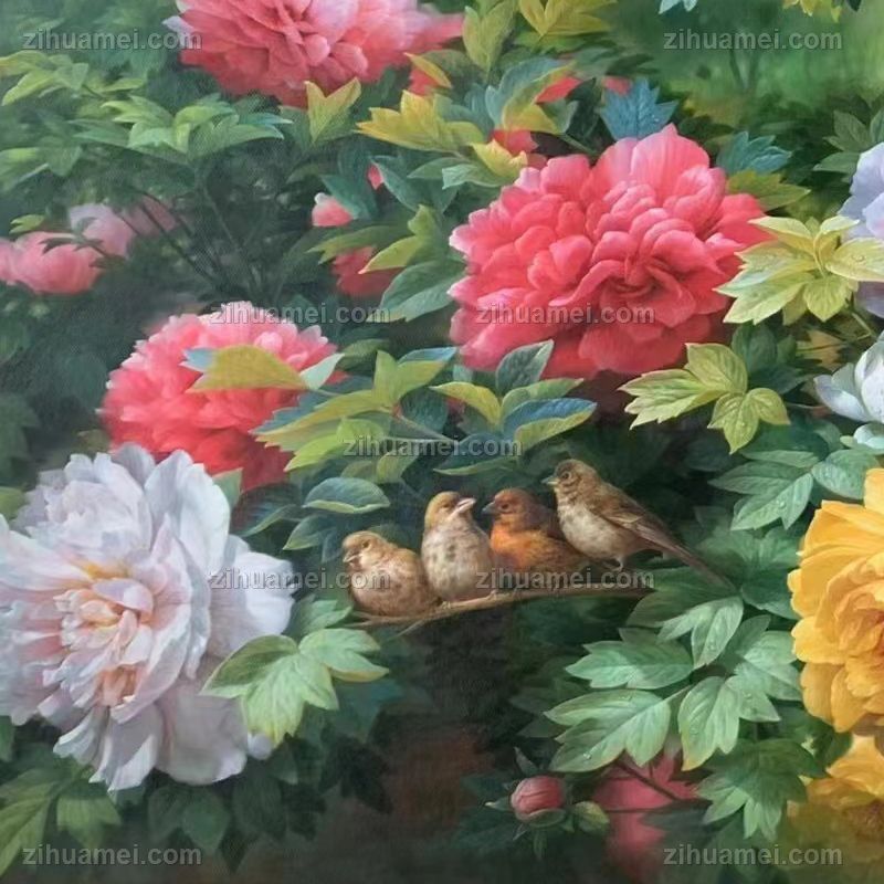 • 适合客厅大厅的纯手绘花鸟油画