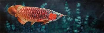 精品写实纯手绘动物油画金龙鱼油画作品 手绘